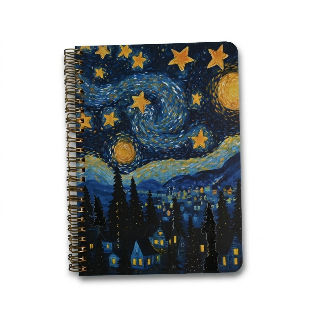 غلاف صلب (Hardcover): كرتون مقوى بمتانة عالية يحمي أفكارك، مع طبقة حماية Matte فاخرة تمنح الغلاف ملمساً ناعماً وتمنع انعكاسات الضوء المزعجة.