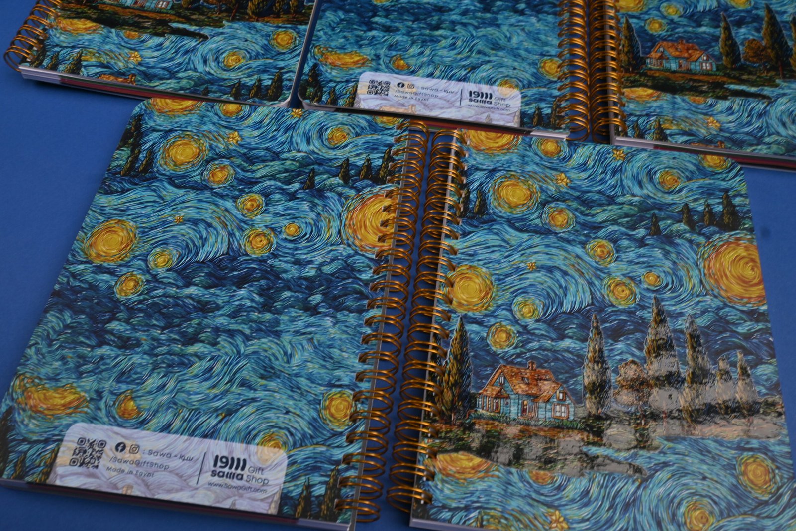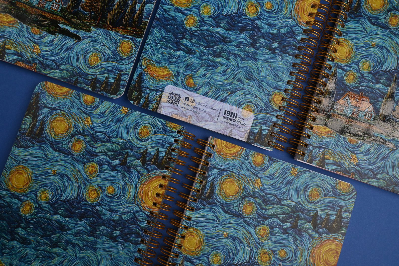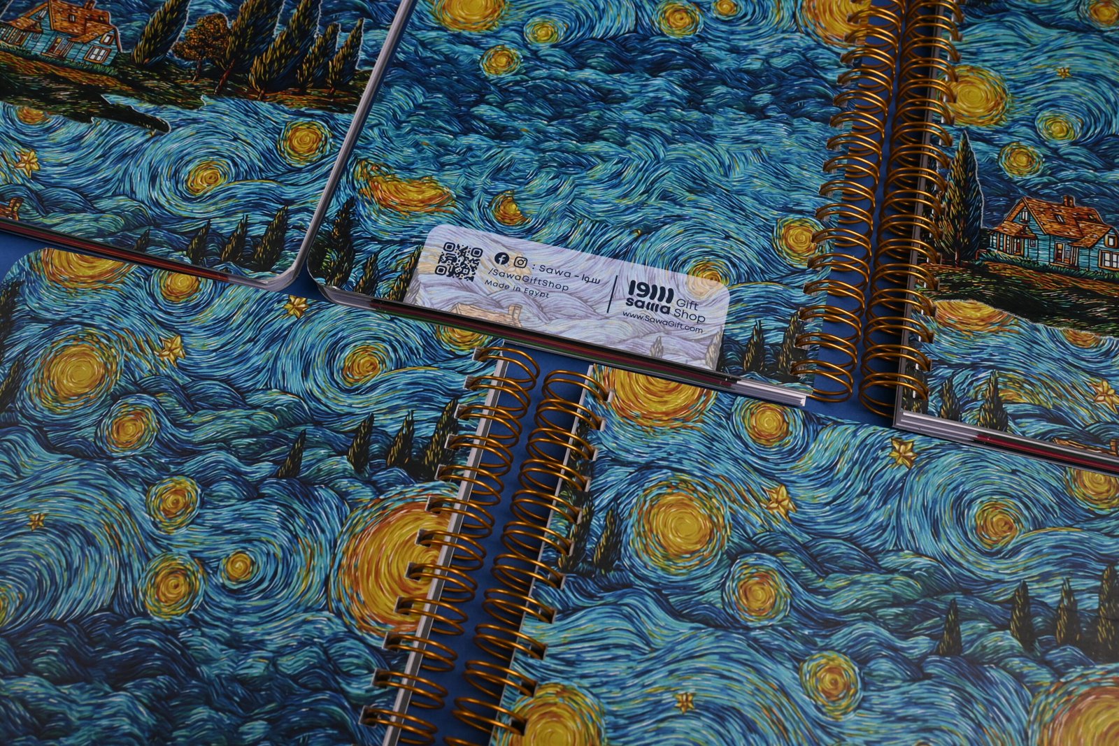 نمط التصميم: يعتمد الغلاف على أسلوب “ما بعد الانطباعية”، بضربات فرشاة دائرية قوية تعبر عن حركة الرياح والطاقة الكونية في السماء.