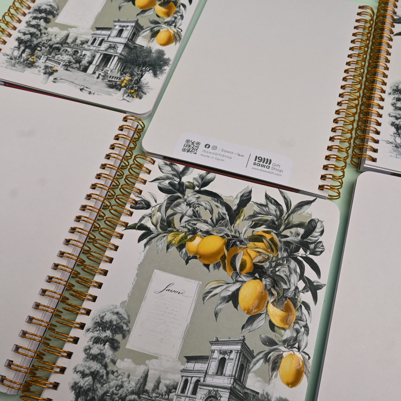 البروز الفني (3D Tactile Experience): تتميز الأجندة بتقنية الاستيكر المجسم على العناصر الطبيعية (مثل حبات الليمون والأغصان)، مما يمنح الغلاف بُعداً ثالثاً وتجربة ملمسية واقعية تشعرك بنضارة الثمار.