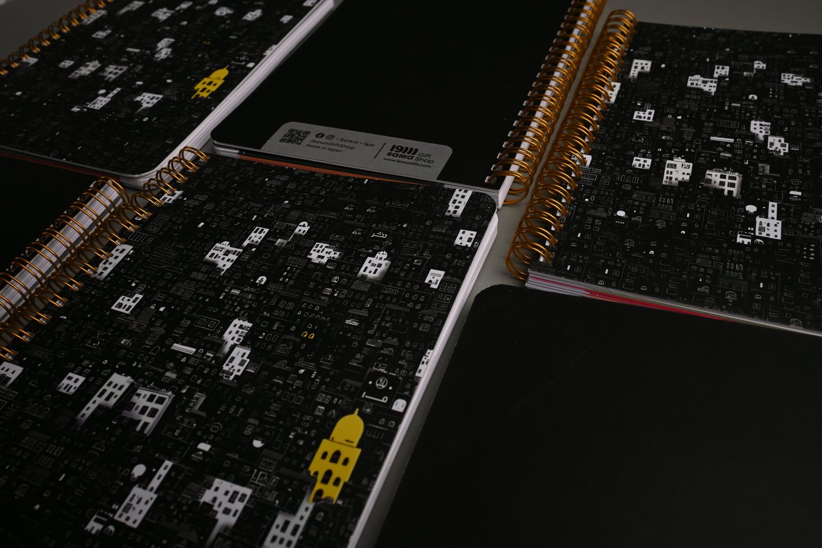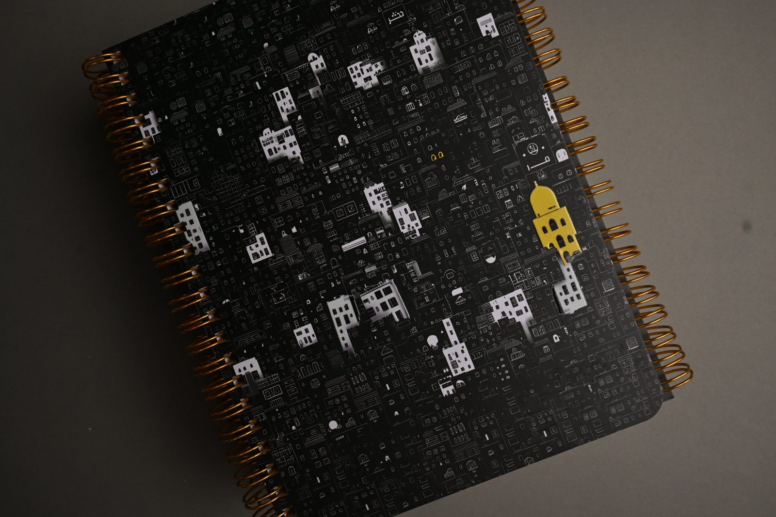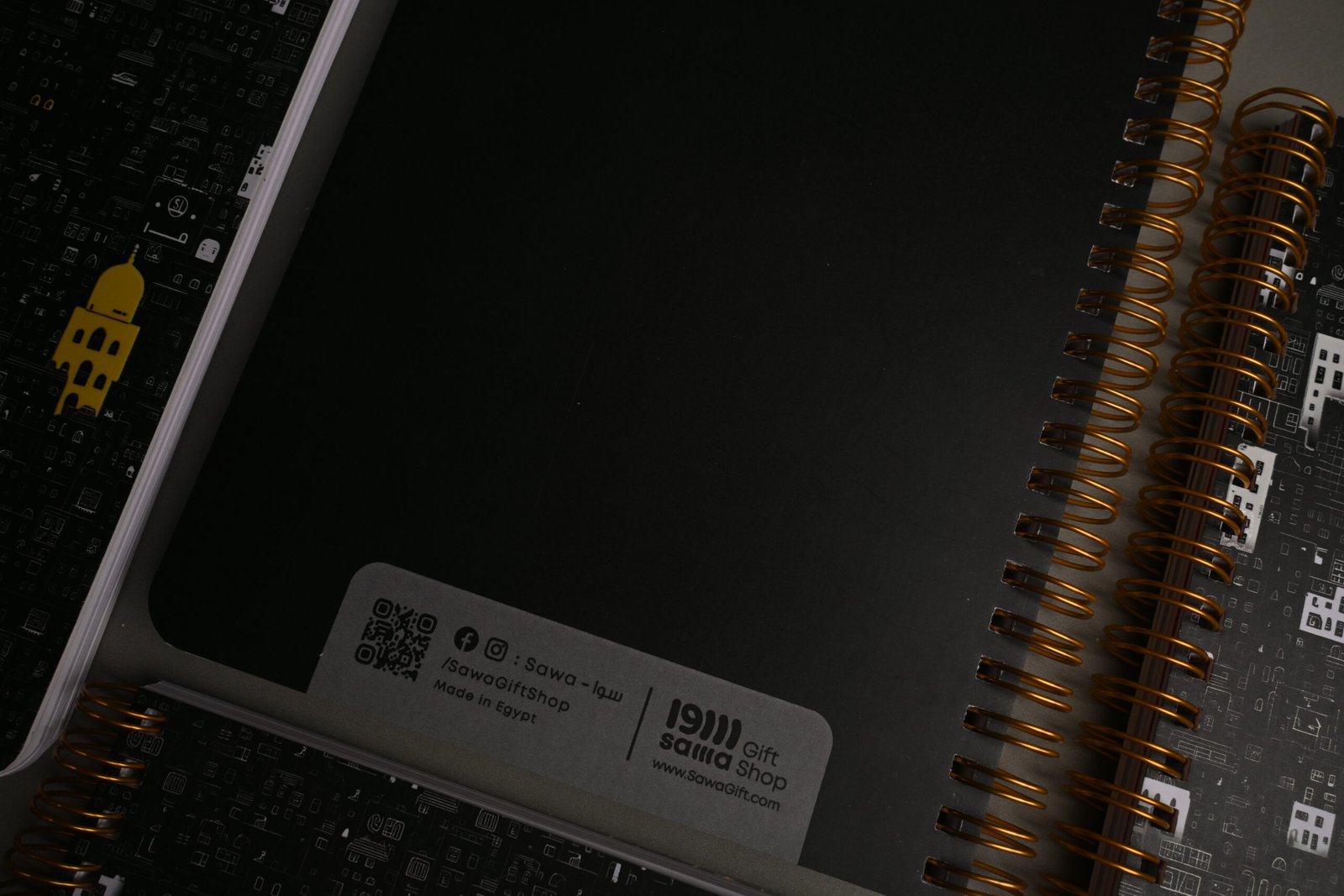 تجليد سلك مزدوج (Double Wire-O): سلك معدني مزدوج باللون الذهبي النحاسي، ليعطي لمسة فخامة تكسر حدة الألوان المحايدة.