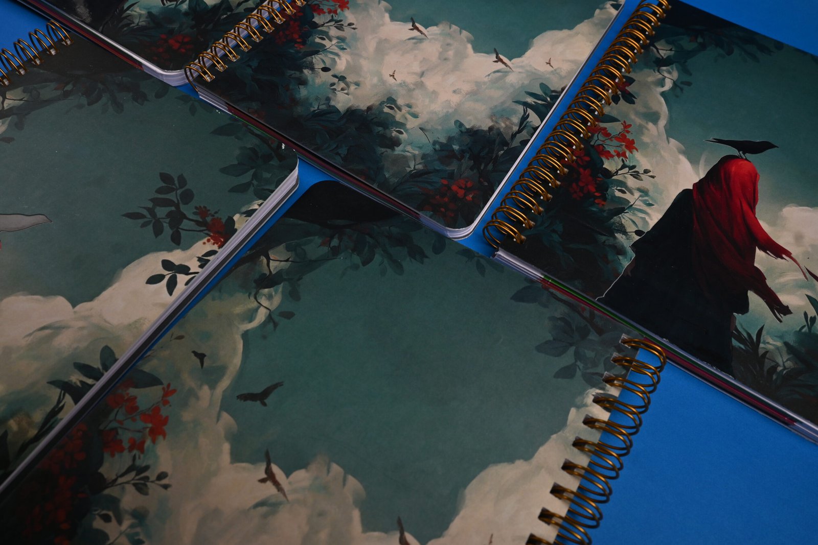 التجليد: سلك معدني مزدوج (Double Wire-O) باللون الذهبي، يمنح الأجندة فخامة استثنائية ويسمح بفتحها بشكل مسطح تماماً.