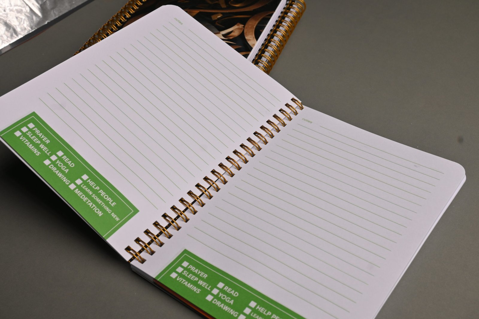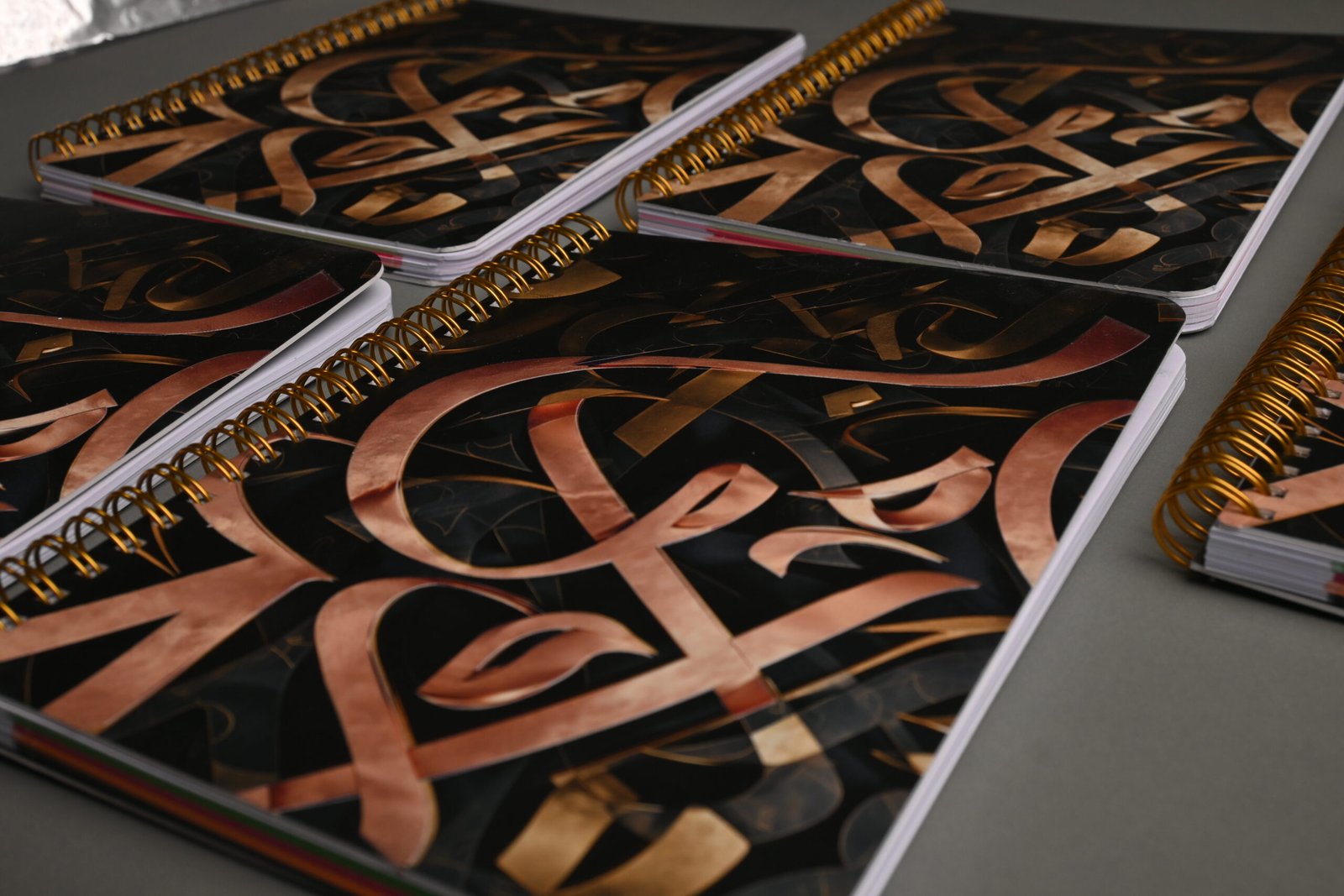 تجليد سلك مزدوج (Double Wire-O): سلك معدني مزدوج باللون الذهبي النحاسي، ليتناغم تماماً مع ألوان الغلاف ويضمن متانة تدوم طويلاً.