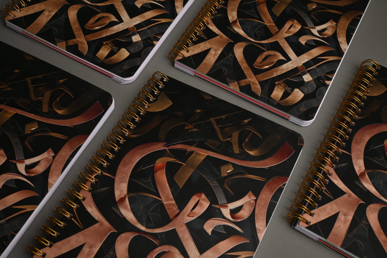 التأثير البصري: استخدام تدرجات اللون النحاسي (Copper) والبرونزي بلمعة معدنية واقعية على خلفية “مات” سوداء، مما يخلق تباينًا بصريًا قويًا يوحي بالفخامة والثراء الفني.